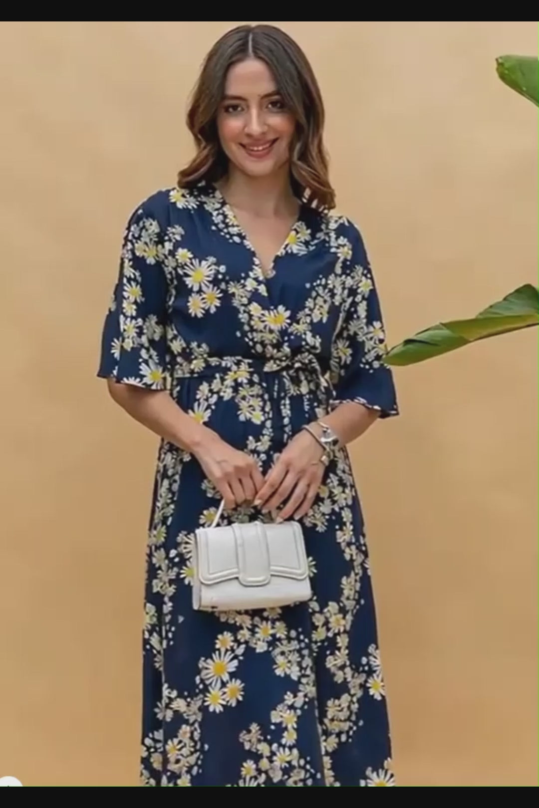 MANOJAVA Women Cotton Floral Printed Wrap Midi Dress