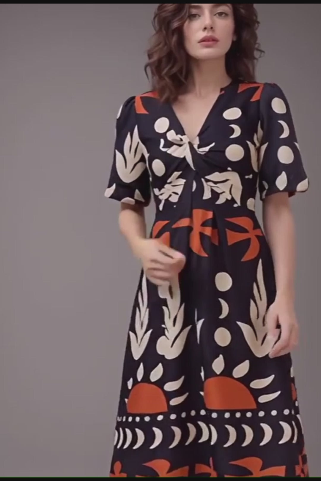 Vendor:NuFaaBizBlack abstract print a-line dress